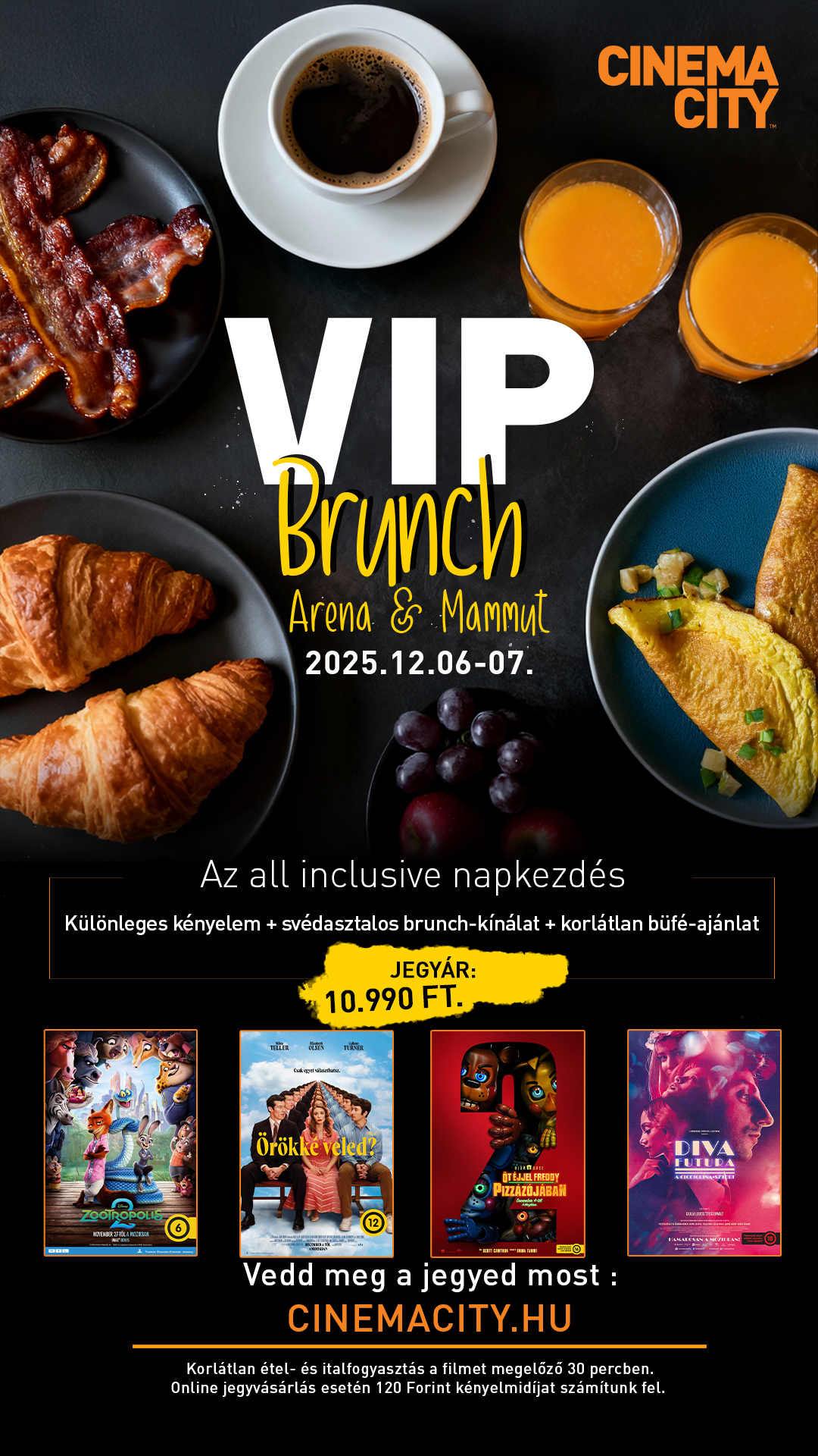 Bruncholj hétvégente DÉLELŐTT a Cinema City Arena és Mammut I. VIP mozikban!